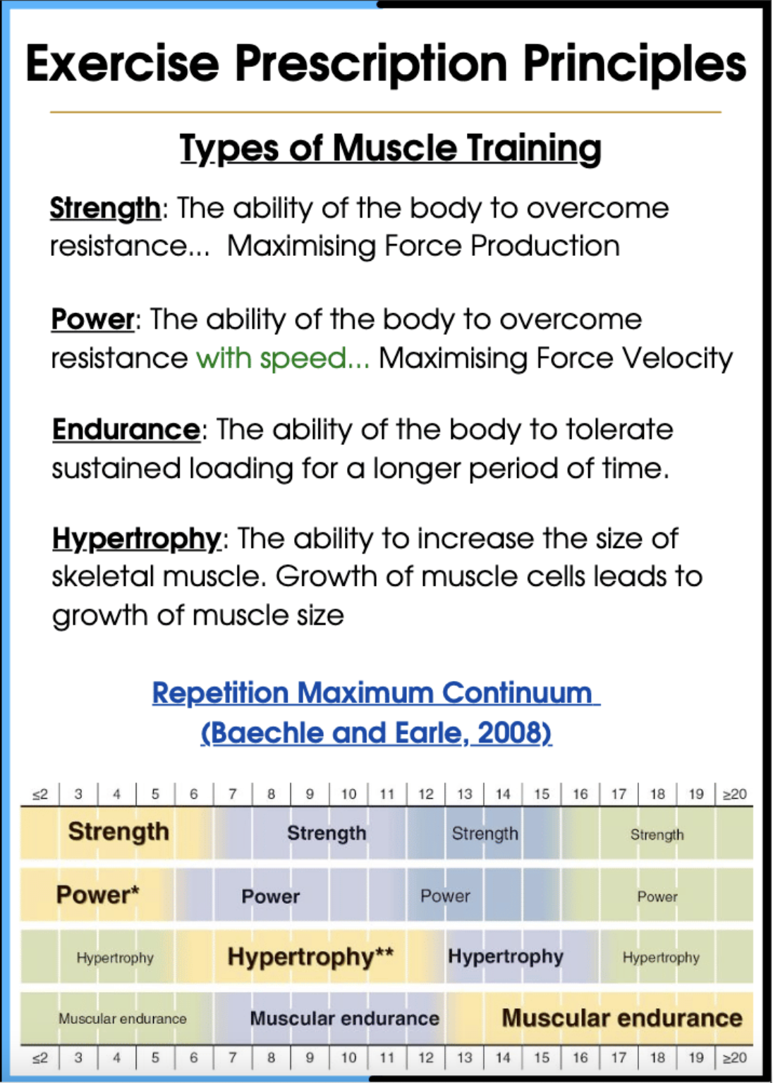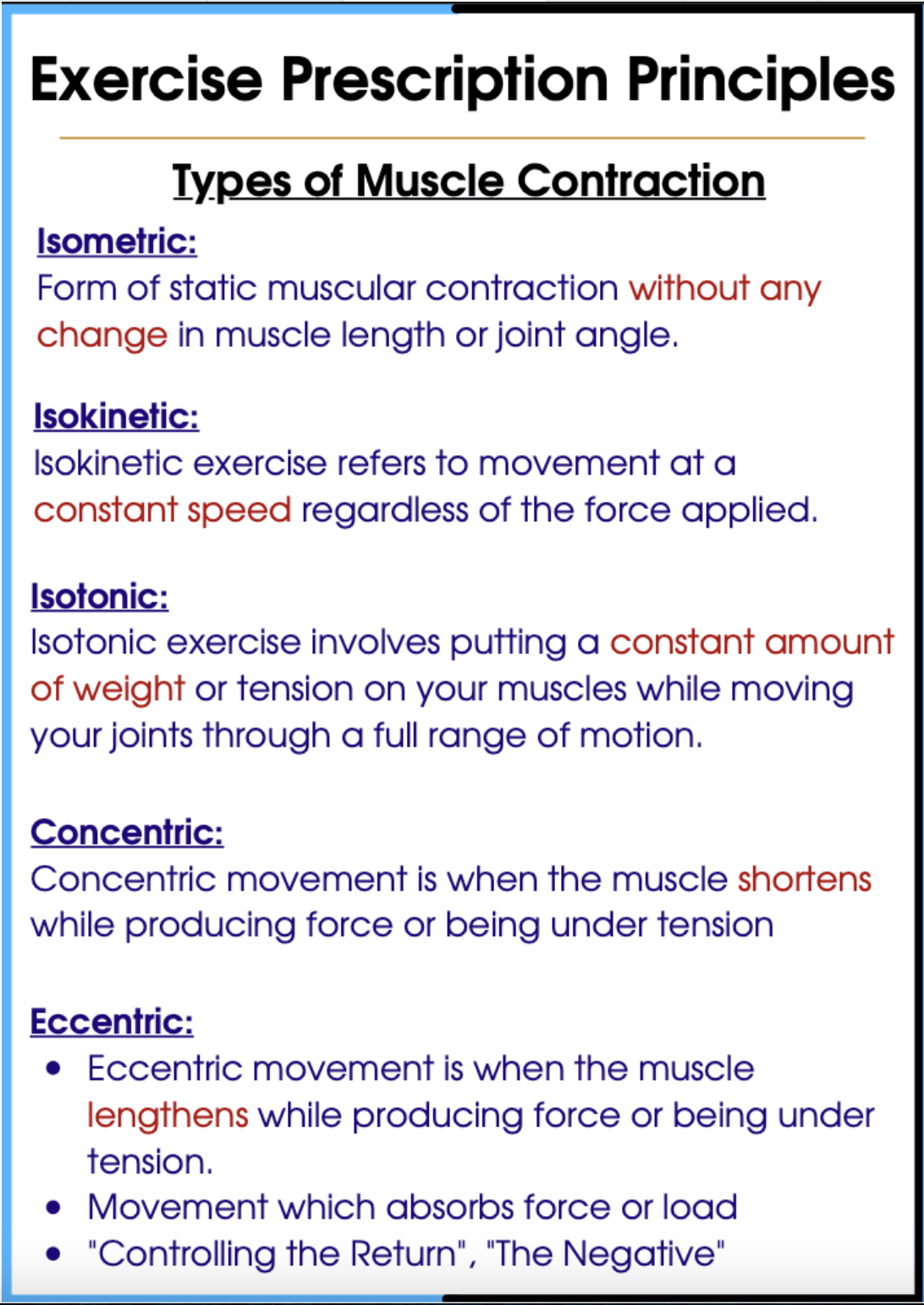 Define the different types of muscle training and consider how they can be applied to rehab.