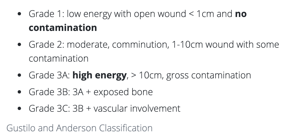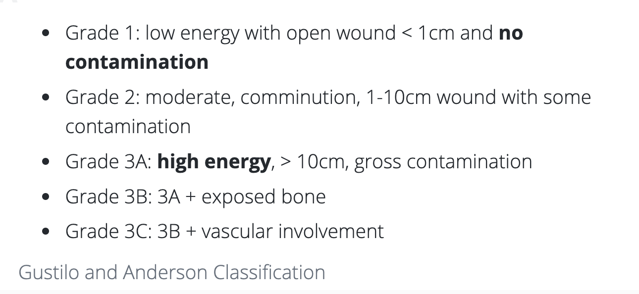 how would you classify a fracture with an open wound of 8cm with slight contamination?