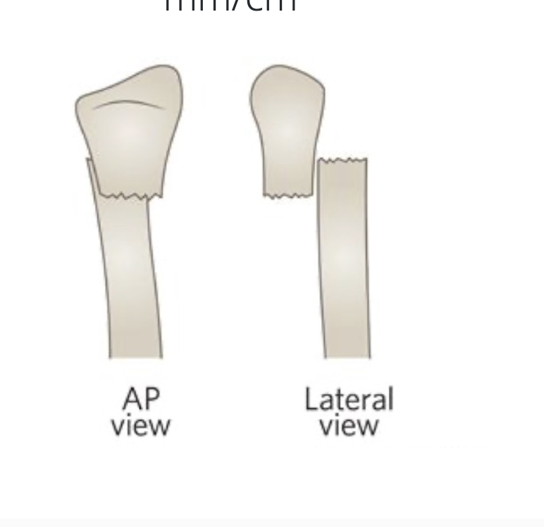 a fracture where the distal fragment longitudinally overlaps proximal by mm/cm is called what
