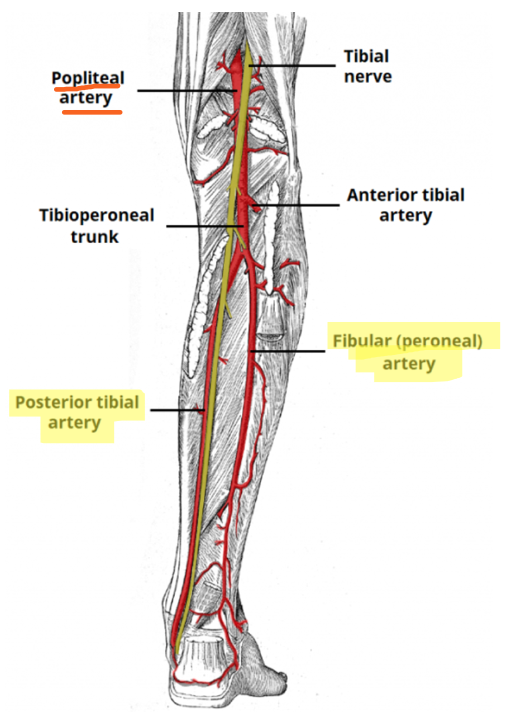 Popliteal artery = Anterior tibial & Posterior tibial artery
