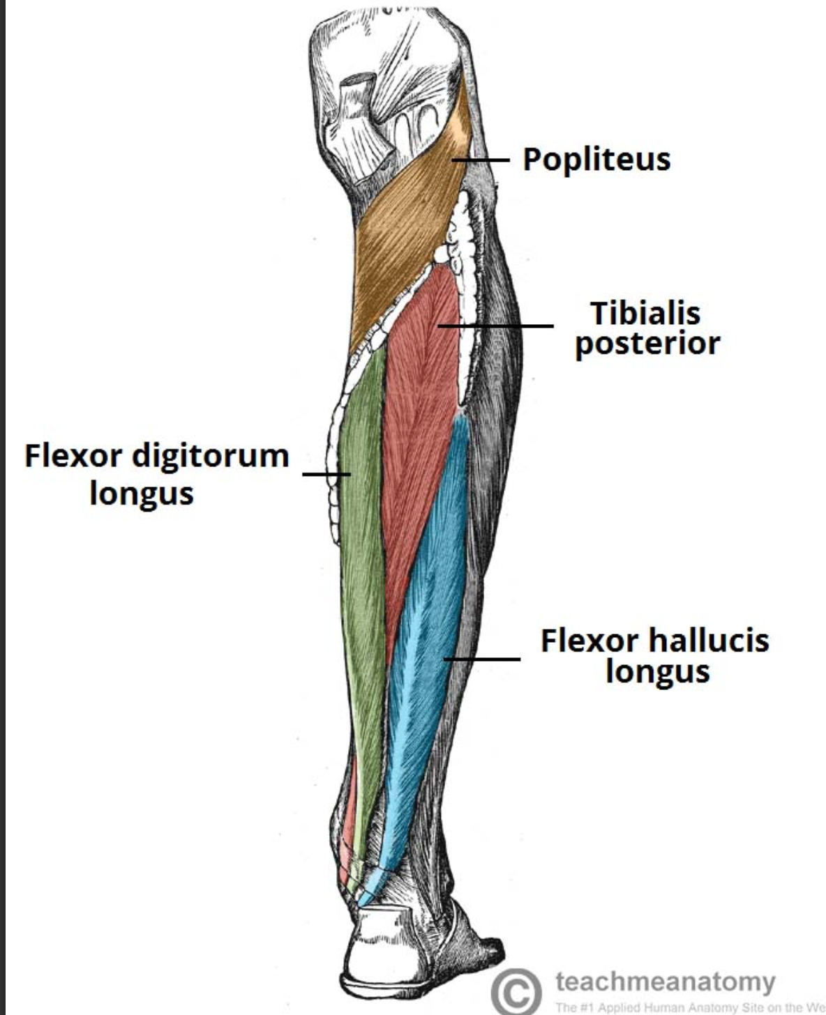 The tibial nerve innervates the muscles of the posterior leg and the majority of the intrinsic foot muscles.