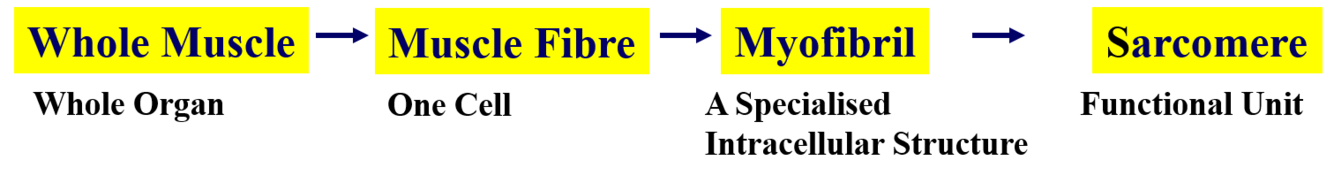 Sarcomeres - the functional units of muscle (functional unit of any organ is: the smallest component capable of performing all the functions of that organ)