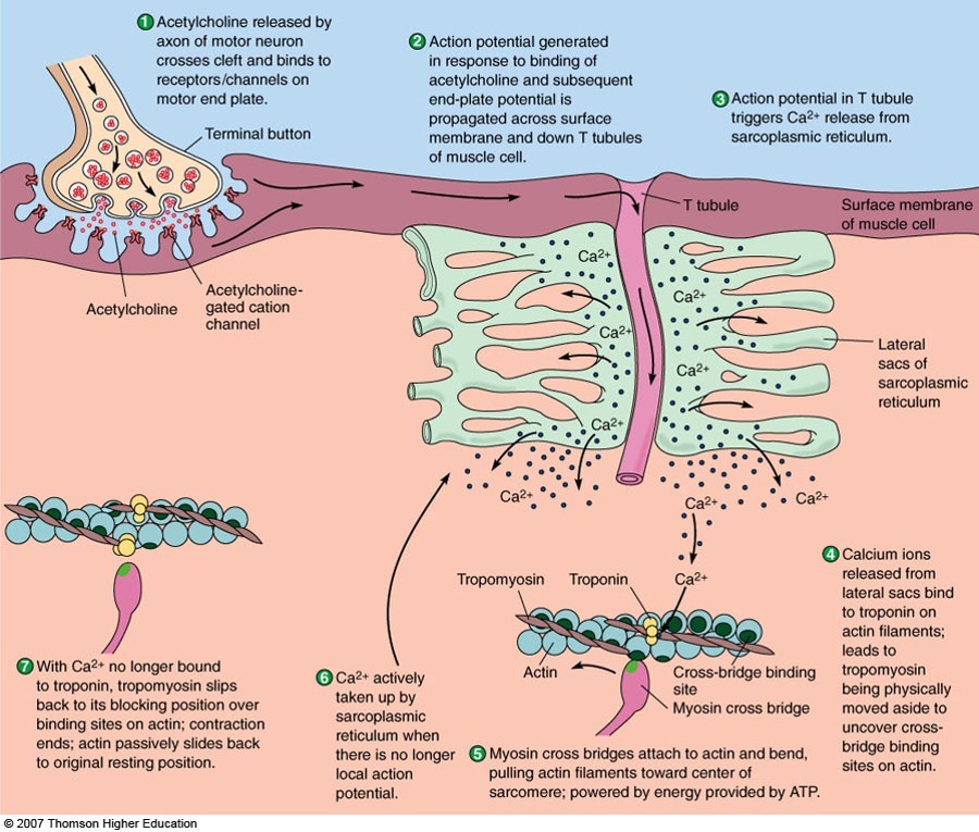 Ca2+ is released from the lateral sacs of the sarcoplasmic reticulum when - The surface actionPotential spreads down the transverse(T)-tubules.