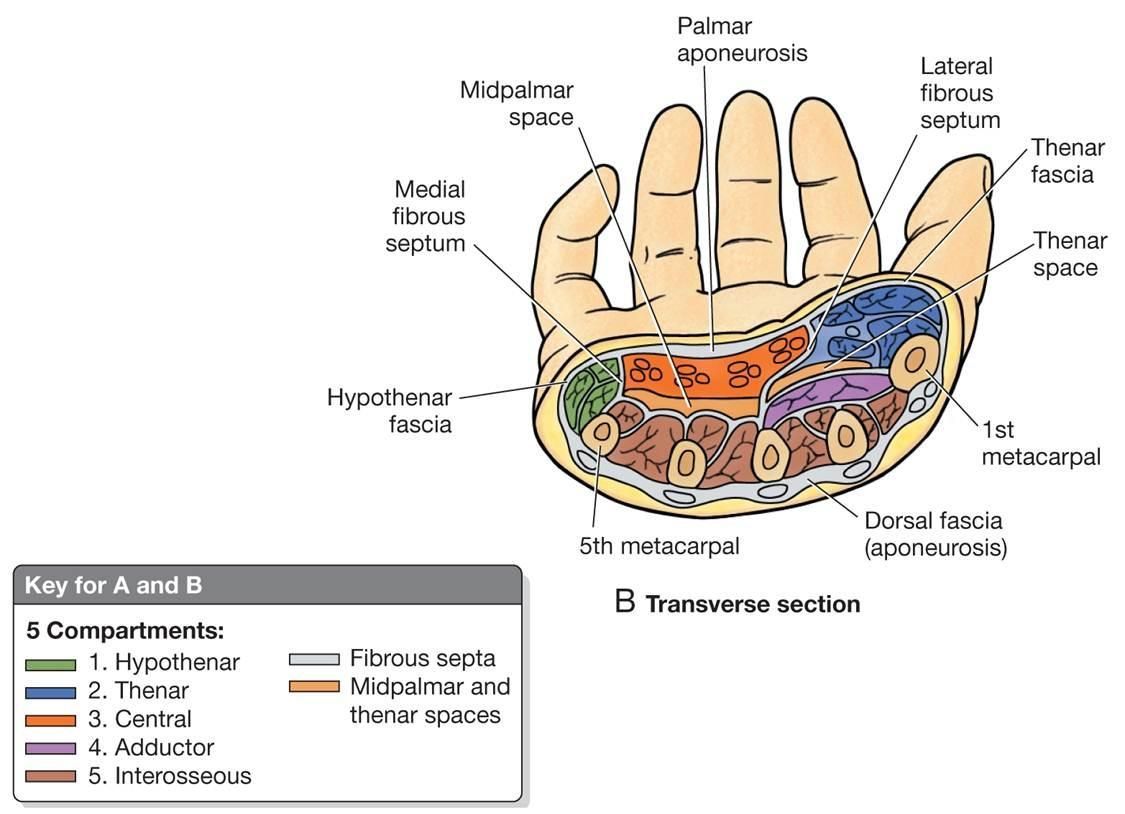 State the 5 compartments of the hand