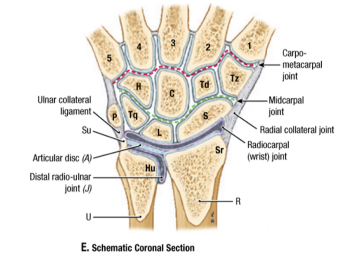 label the different wrist joints and articular disk