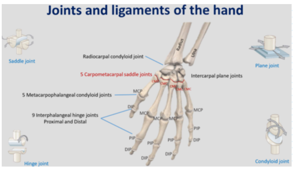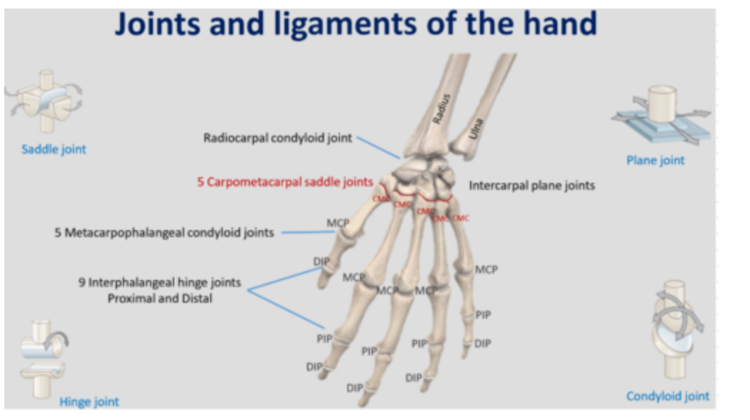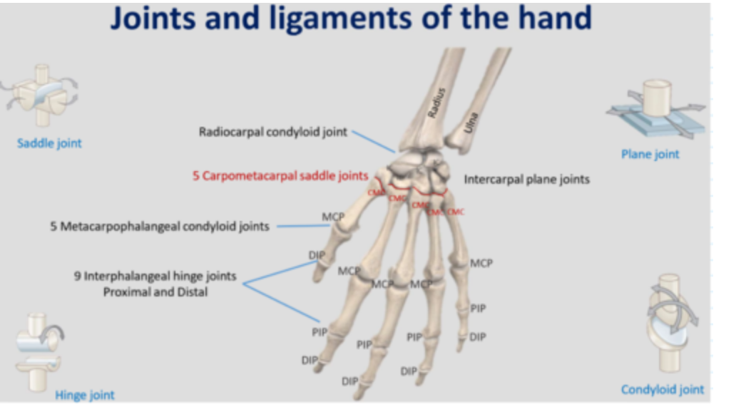 Carpometacarpal plane synovial APART FROM THUMB = SADDLE