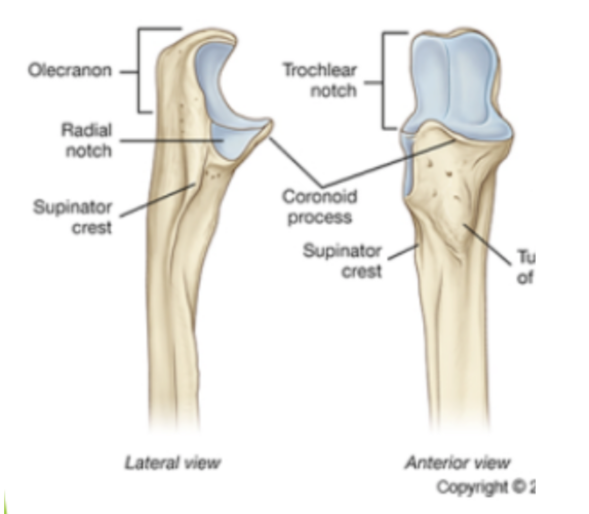 2) Trochlea notch (hosts trochlea of humerus)