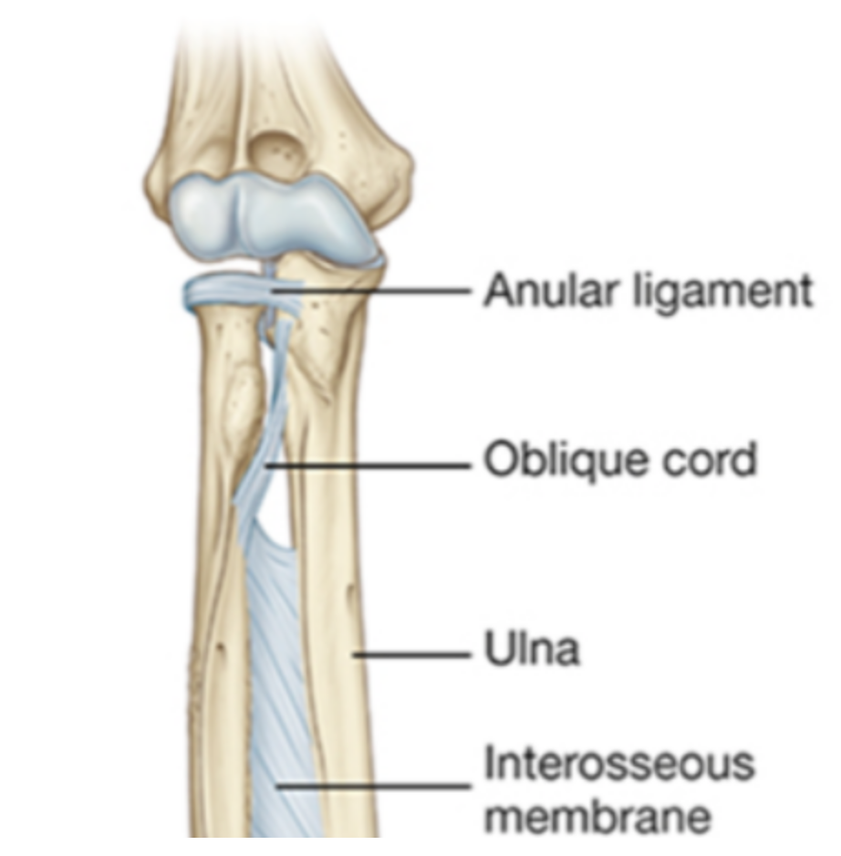 - holds head of radius within the radial notch of the ulna