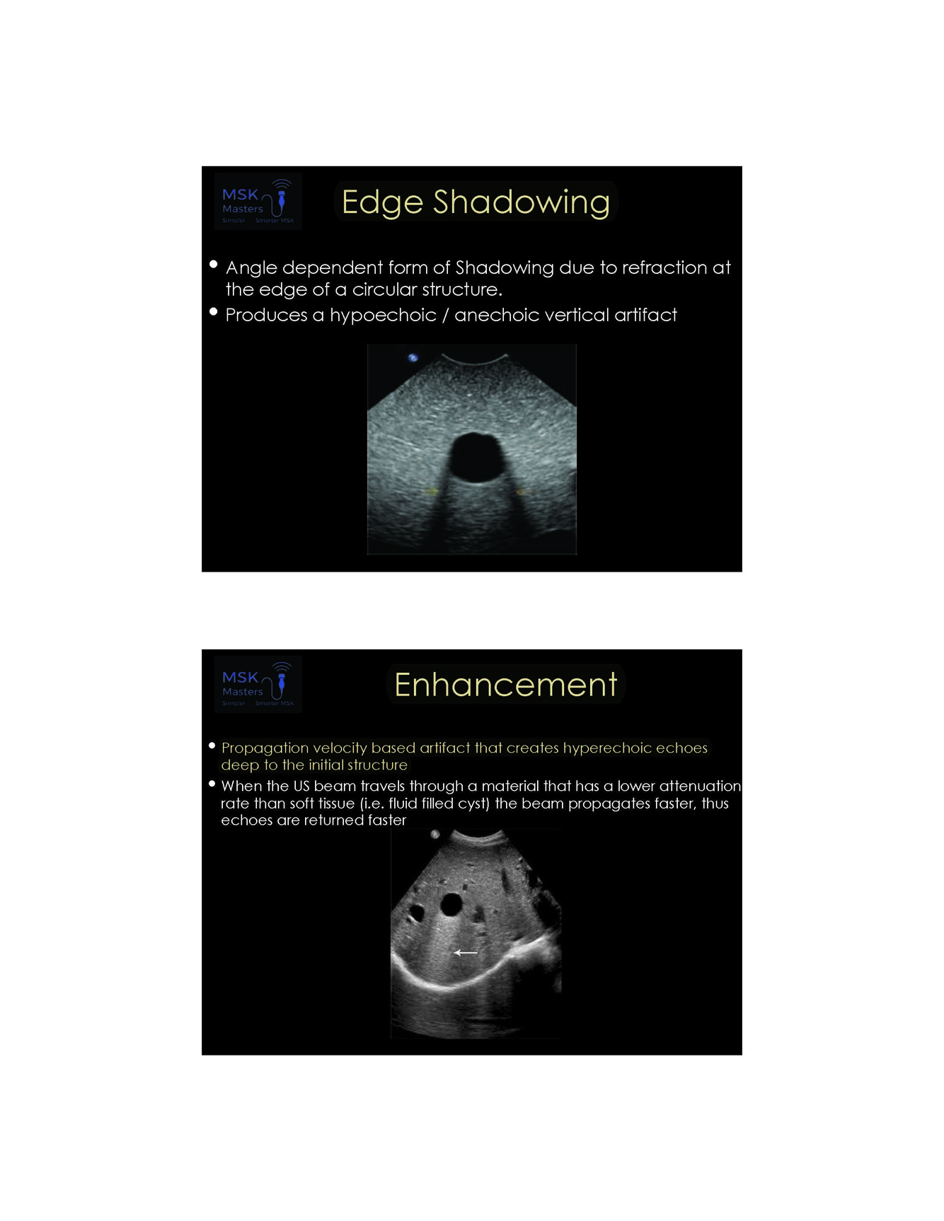Propagation velocity based artifact that creates hyperechoic echoes deep to the initial structure