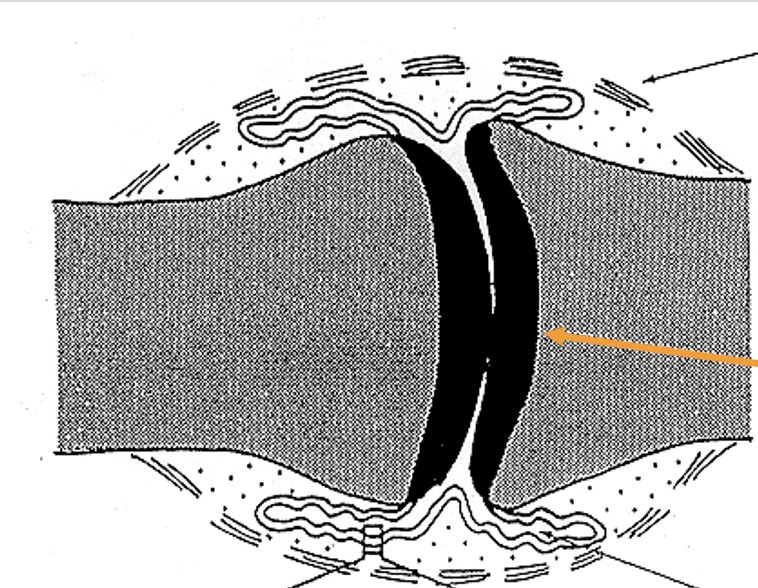Very superficial, fenestrated capillaries. Role: - produce synovial water-stock it with nutrients for avascular cartilage.