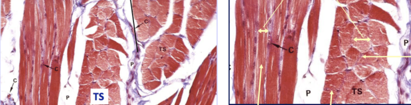 Below shows fascicles under a trichrome strain, showing that hay mas clear subdivisions.
