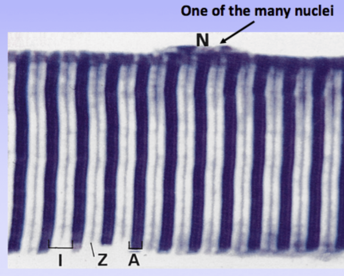 Cardiac muscle fibers are much smaller, striated, involuntary (controlled by ANS) and organised into sarcomeres which are joined end to end. The cardiomyocyte cells solo tienen 1 or 2 nuclei in the centre.