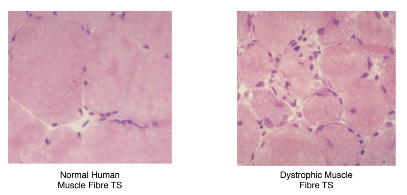 it results in smaller muscle fibers. Hay mas connective tissue, and death and repair occuring