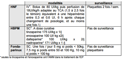 Posologie des anticoagulants curatifs dans le ttt des MTEV?