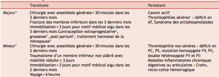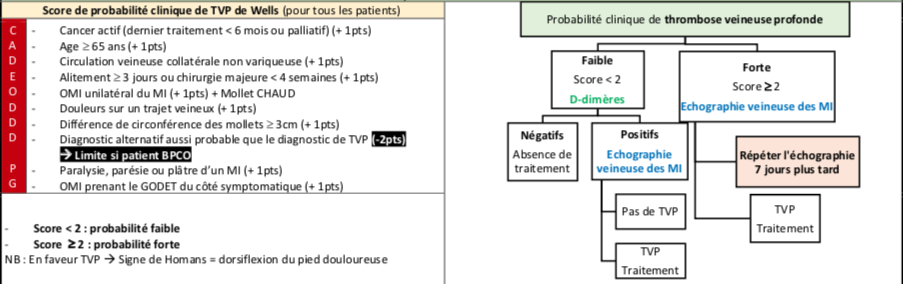 Siège : TVP proximale (60%) / petit bassin (post partum) / VD (cathéter central) …
