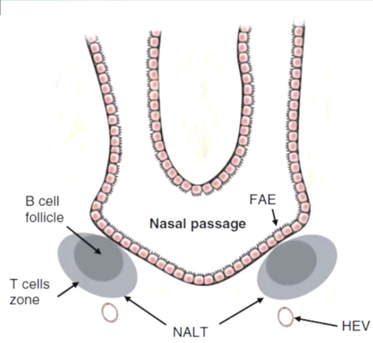where there is structured lymphoid tissue (i.e. nasal FAE)