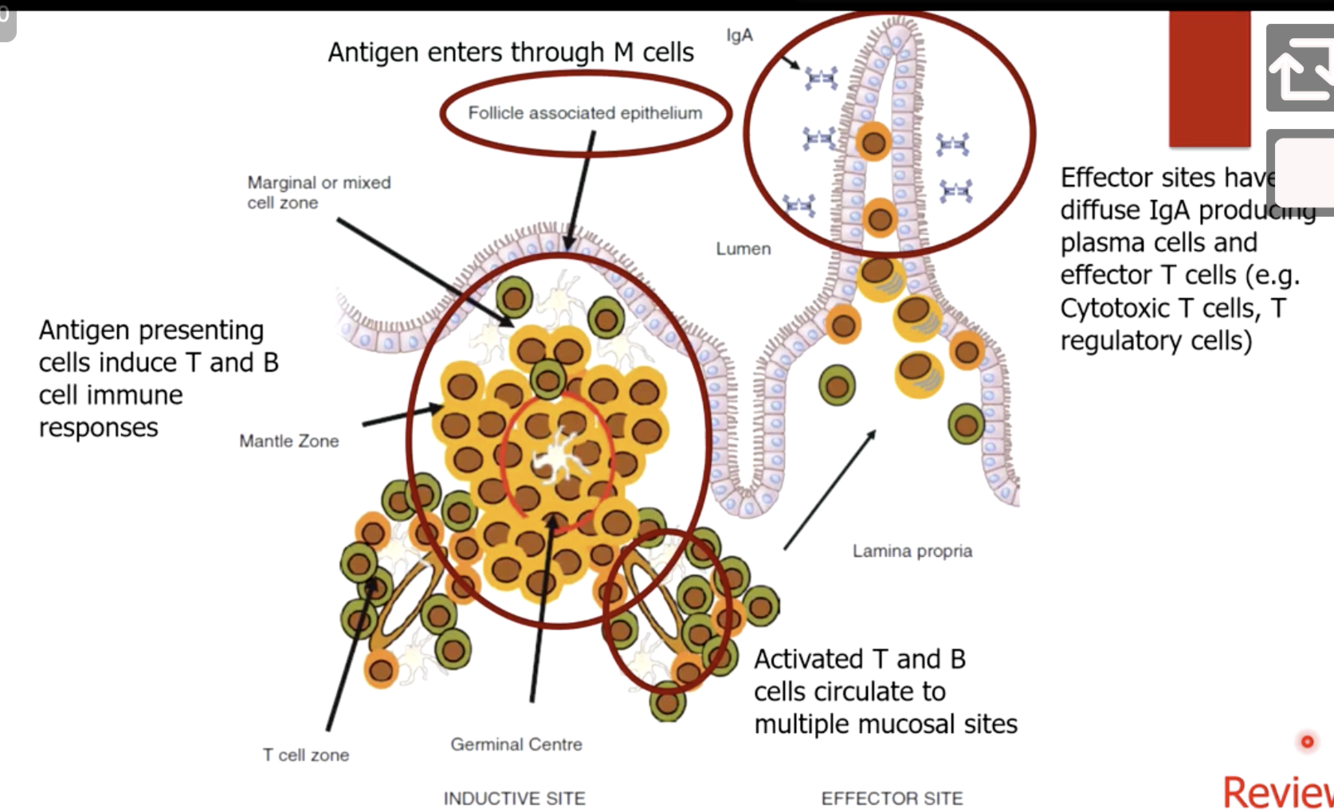 MALT is associated w/M cells and FAE and has the ability to induce microbes into the lamina propria