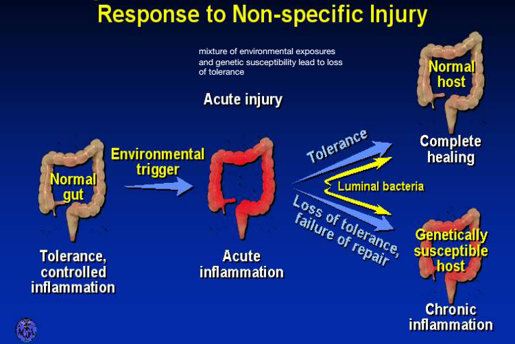 IBD is known to have an altered mucosal immune response to antigens, and many patients report a GI infection that preceded development of the disease.