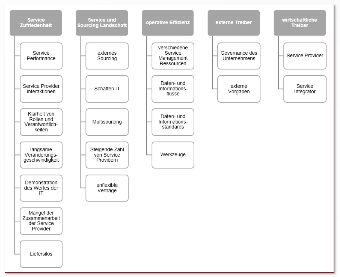 Was sind die 5 Treiberkategorien für Service Integration and Management (SIAM)?