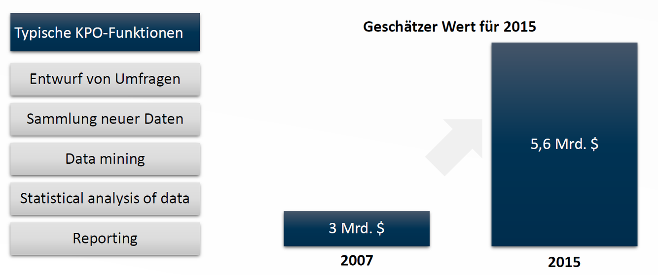 Knowledge Process Outsourcing (KPO) […] ist das Outsourcing von wissensintensiven Prozessen wie Business-, Markt- und Branchenforschung.