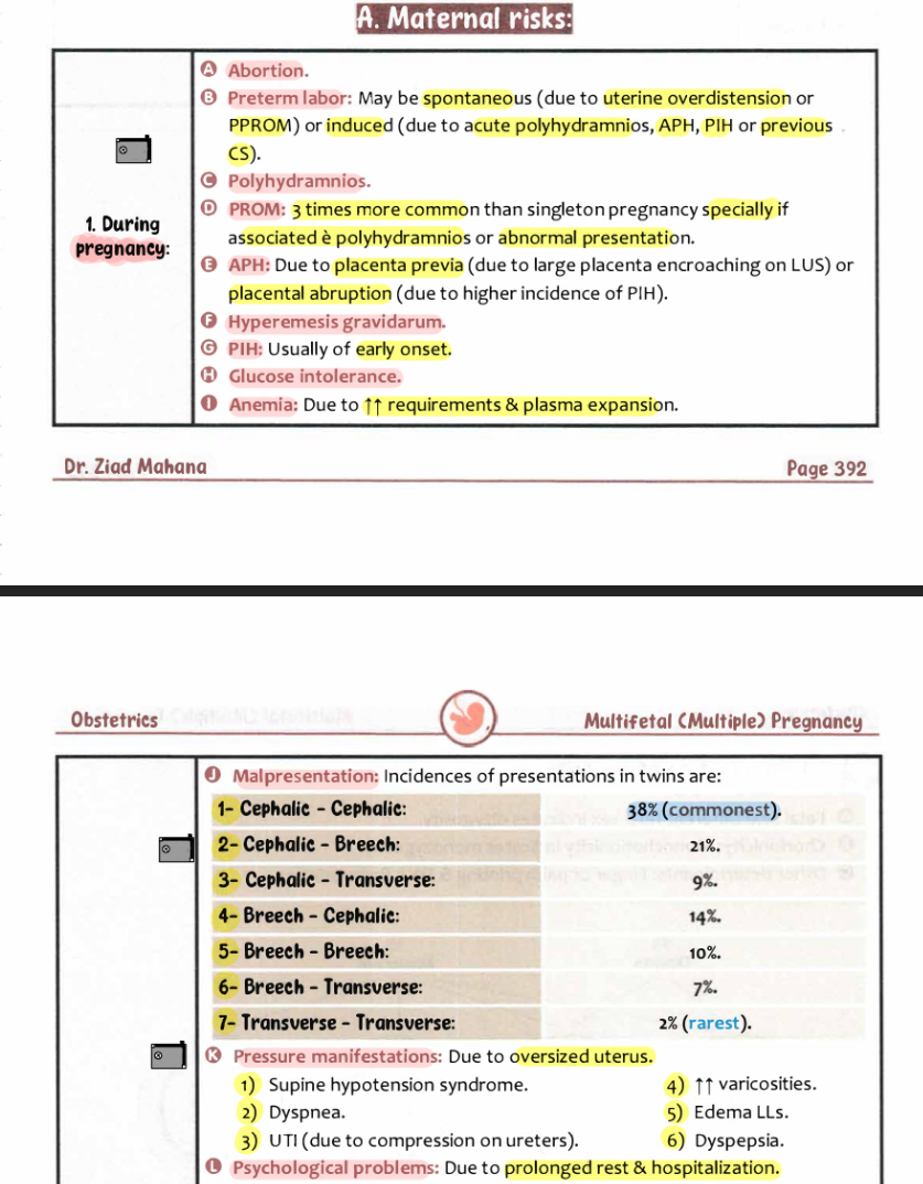 Maternal Complications of Multifetal Pregnancy During Pregnancy