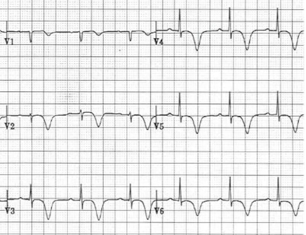 Padrão Wellens tipo b (inversão onda T profunda em V2 e V3)