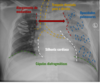 Material hiperdenso em seio maxilar, com calcificações lineares de permeio