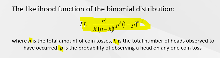 Probability functions for n choosing i, each person in the sample, the log-likelihood function, and the maximum of the likelihood function