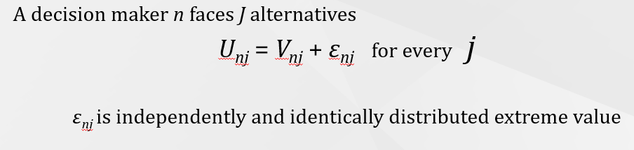 What is the utility function for n facing j alternatives in the multinomial logit model?