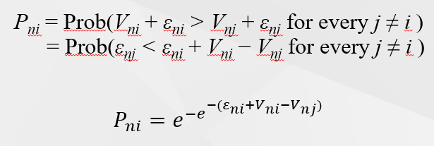 How do we calculate εni in the multinomial logit model?