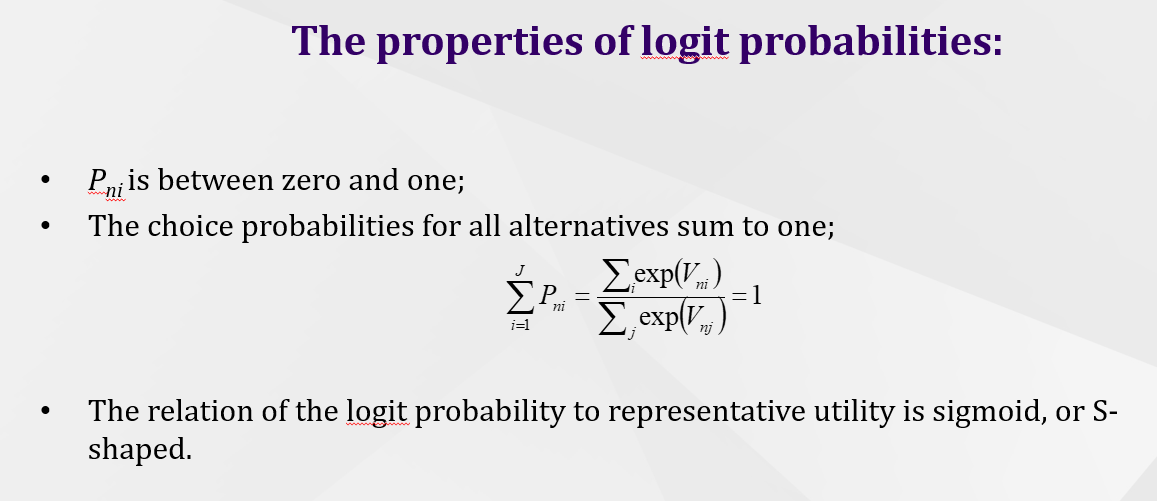 What are the properties of the logit probabilities? (3)