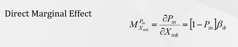 Direct Marginal Effect represents the change in the choice probability of an alternative given a unit change in a variable related to that same alternative.
