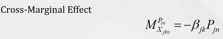 •Cross-Marginal Effect represents the change in the choice probability of an alternative given a unit change in a variable related to a competing alternative.