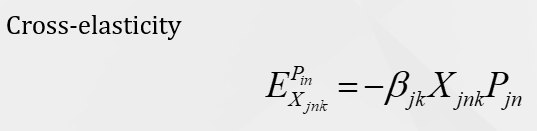 •Cross-elasticity measures the change in probability of choosing a particular alternative in the choice set with respect to a given percentage change in an attribute of a competing alternative.