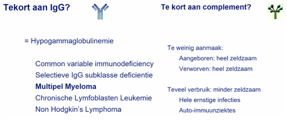 wat gebeurt er bij een tekort aan IgG en tekort aan complement