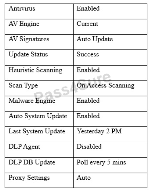 A user workstation was infected with a new malware variant as a result of a drive-by download. The security administrator reviews key controls on the infected workstation and discovers the following: