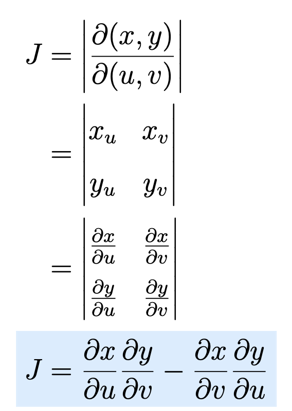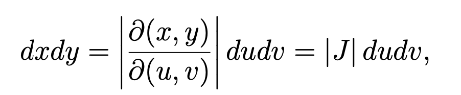 What is the equation for replacing the element of area (dxdy) with dudv