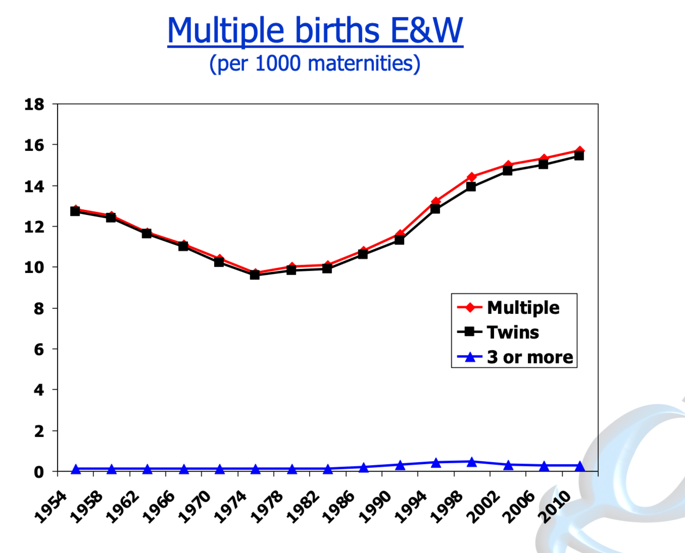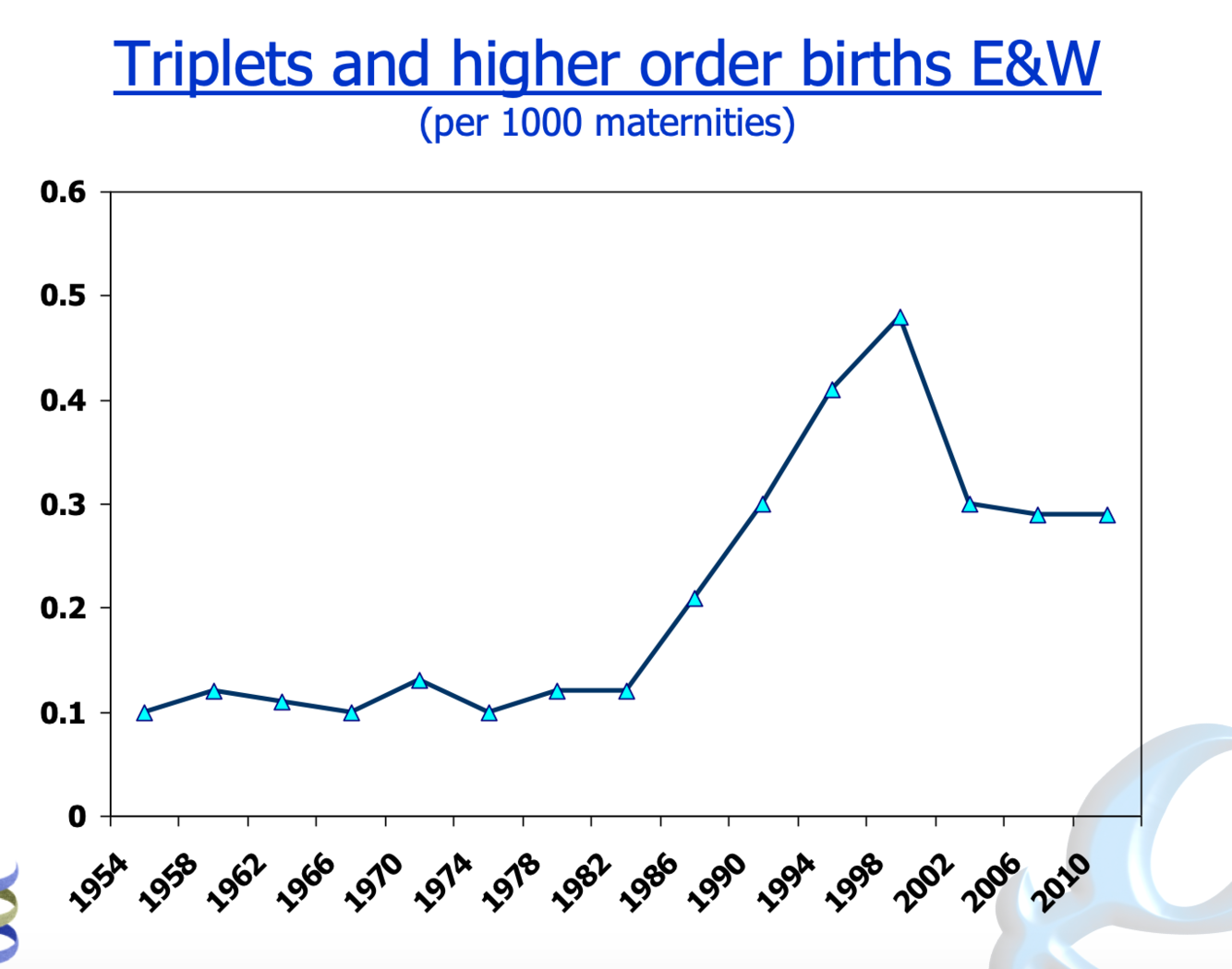 Triplets and higher order births E&W (per 1000 maternities)