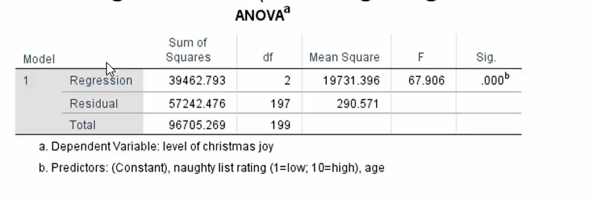 e.g. regression model was significant, F(2,197) = 67.91, p < .001