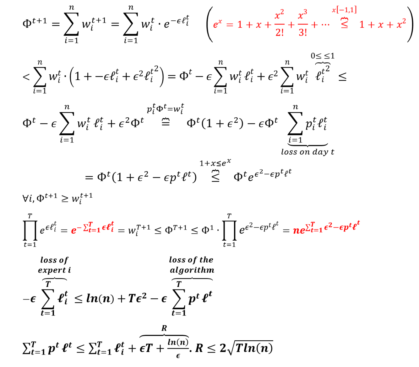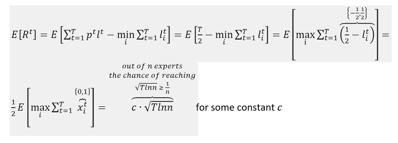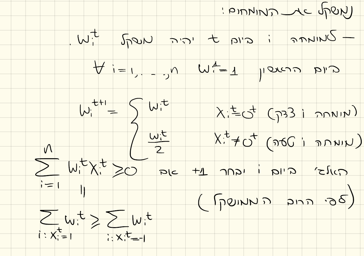 In each day in which the algorithm is wrong, most of the experts are wrong, thus the number of expert is reduced by at least half. After log(n) mistakes we’re left with the always-right expert.