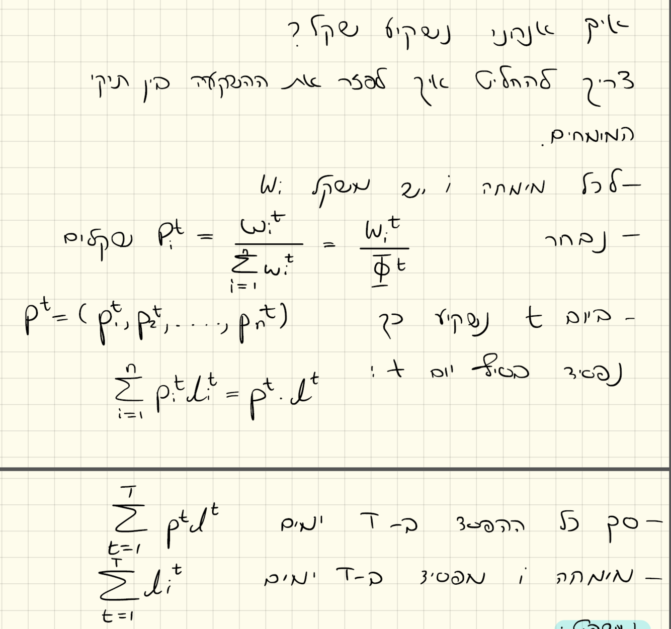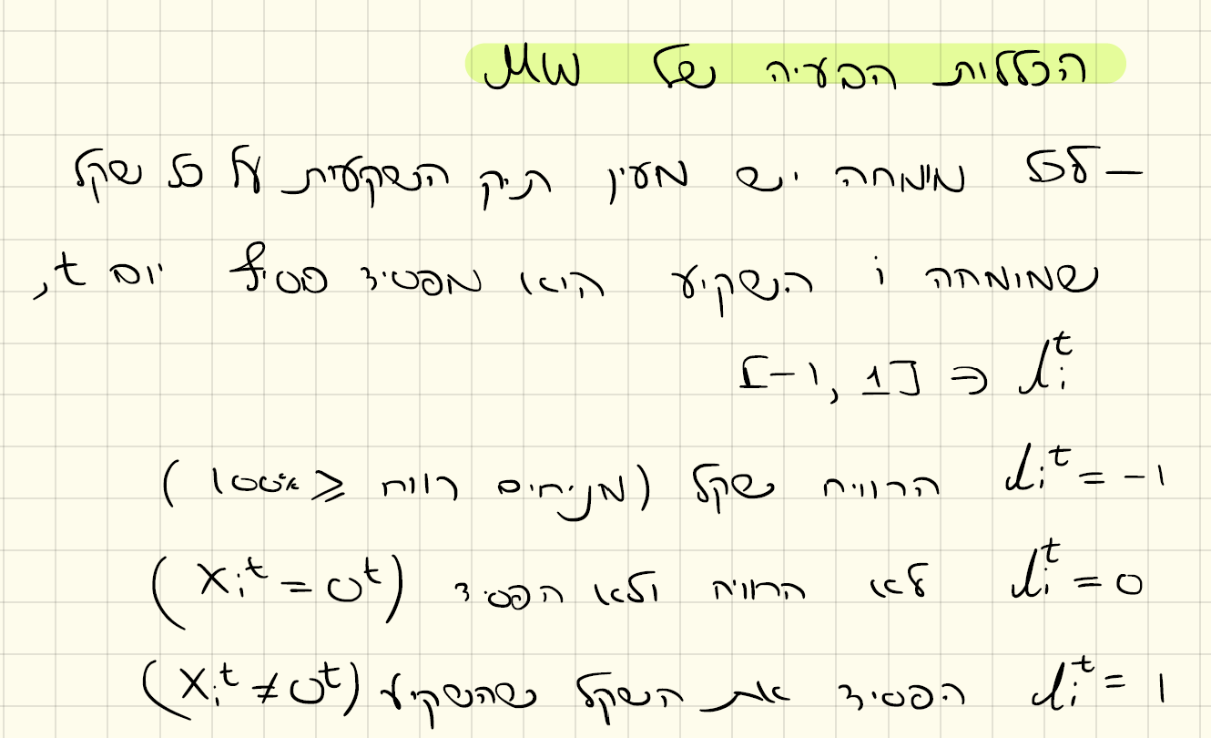 Each expert has a portfolio. On every Shekel that he invests he loses by the end of day t, Lt = {-1, 0 ,1}.