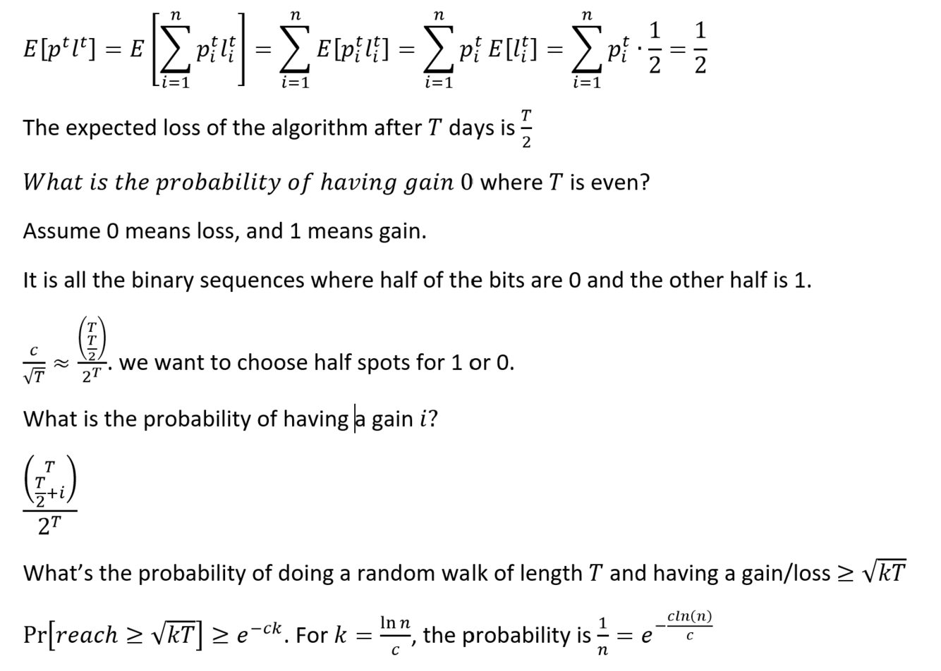 what is the probability of having a gain/loss>= sqrt(kT)