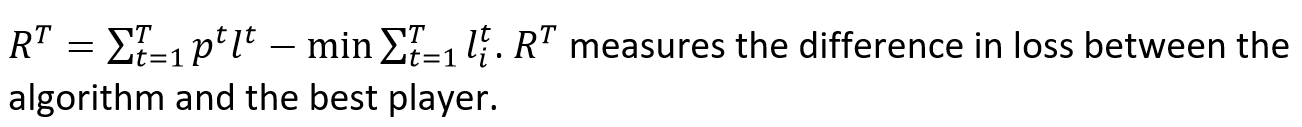 Define R^T, regret at the end of the algorithm
