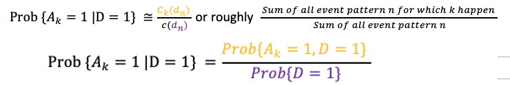 Donne la formule Prob {A_k=1 |D=1} = ??