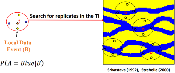 We look at the relationships between multiple points simultaneously, and we find the multiple-point statistics. It contains a substantial amount of information about connectivity and curvilinear geological structures.