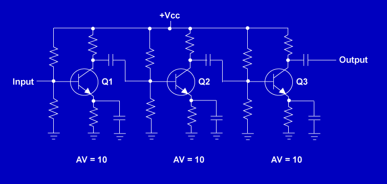 Av (total) = Av1 x Av2 x Av3