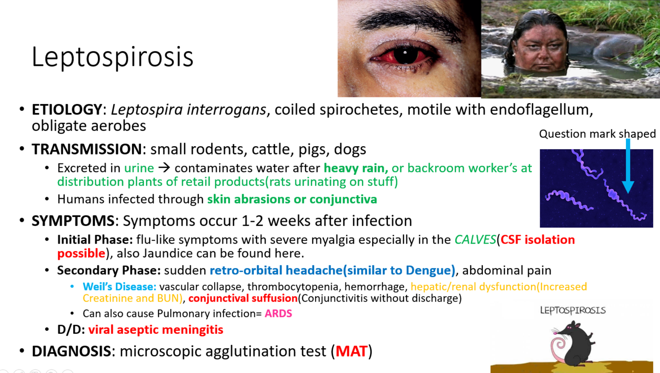L. interrogans causes ____, specifically in the _____ (muscle group)
