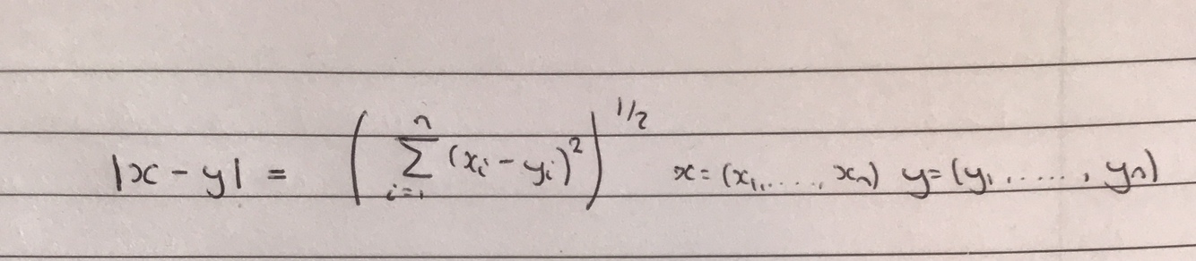 Define Euclidean distance for x,y in Rn
