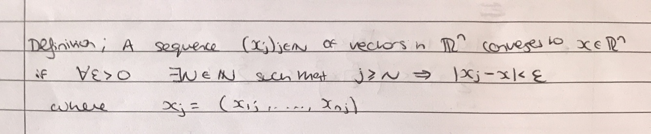 Define convergence for a sequence of vectors (xj)