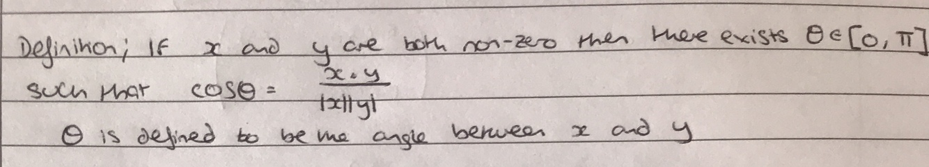 Define cos theta with regards to the cauchy schwartz inequality
